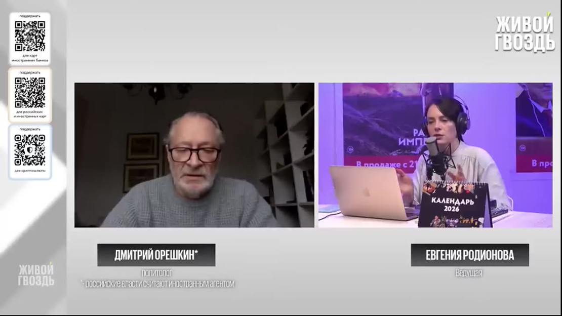 В прямом эфире на вопросы зрителей отвечает политолог Дмитрий Орешкин — признан российскими властями иностранным агентом.