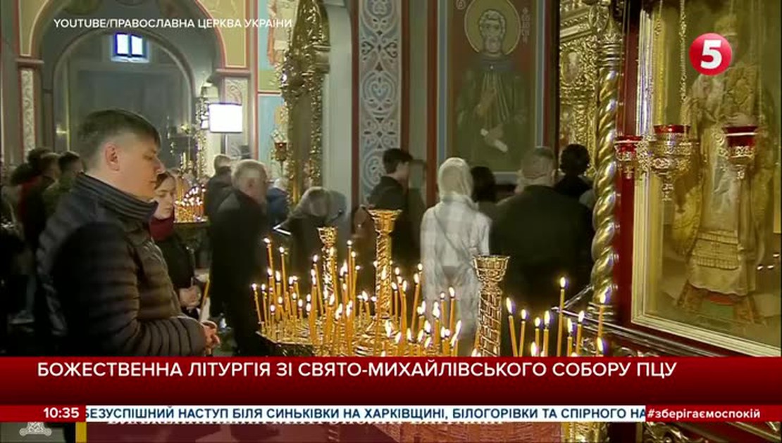 Прямая трансляция божественной литургии из Свято-Михайловского собора Православной Церкви Украины в Киеве.
