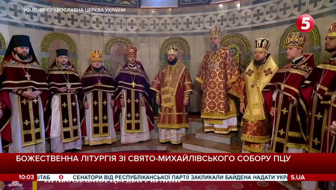 Прямая трансляция божественной литургии из Свято-Михайловского собора Православной Церкви Украины в Киеве.