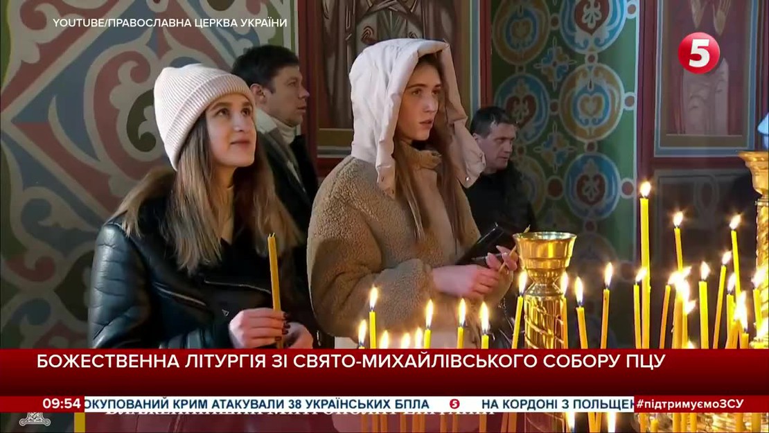 Прямая трансляция божественной литургии из Свято-Михайловского собора Православной Церкви Украины в Киеве.