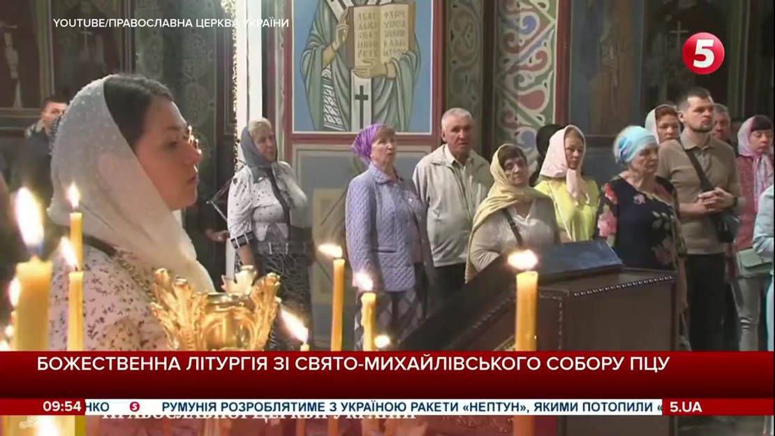 Прямая трансляция божественной литургии из Свято-Михайловского собора Православной Церкви Украины в Киеве.