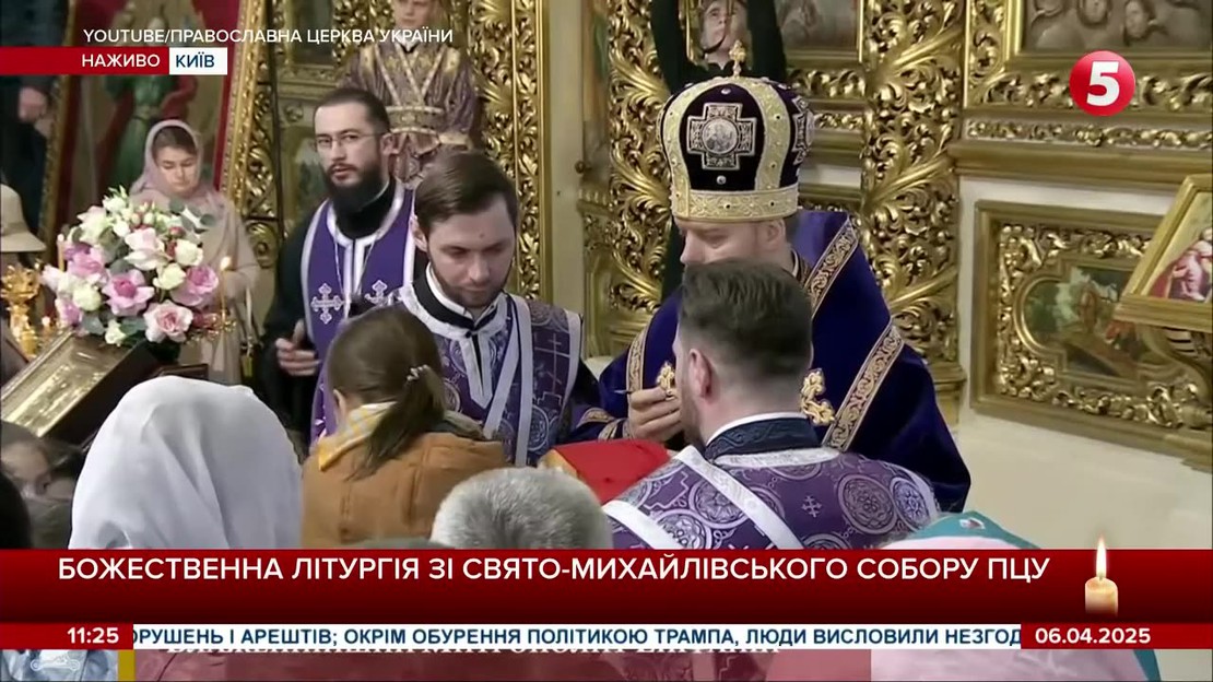 Прямая трансляция божественной литургии из Свято-Михайловского собора Православной Церкви Украины в Киеве.