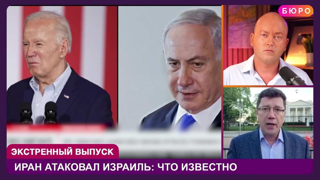 Экстренный выпуск новостей на канале "БЮРО". Последние часы мы следим за обострением ситуации на Ближнем востоке. Иран атаковал Иразиль дронами и крылатыми ракетами. Биньямин Нетаниягу выступил с обращением к нации. Он отметил, что Израиль на протяжении многих лет готовился к прямому удару со стороны Ирана, и сейчас все оборонительные системы развернуты, а власти "готовы к любому сценарию.