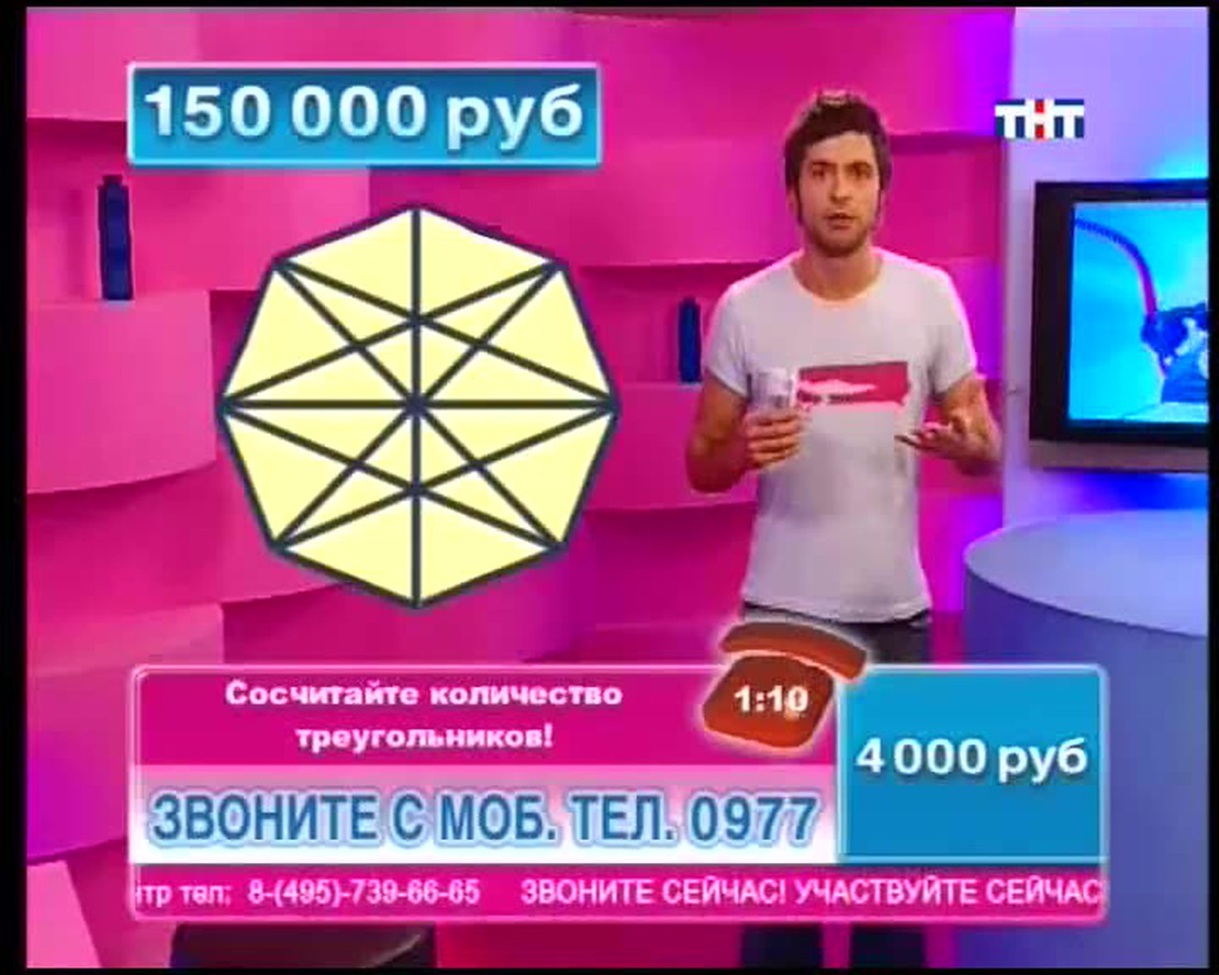 Назовите столицу европейского государства на букву "Х". В названии какой программы ТНТ целых две буквы Ы? ЕЛТЕОРВЗИ тоже имеет отношение к ТНТ. Переставьте буквы и получите слово. Ведущий телевикторины Сергей Блохин задает в прямом эфире вопросы. Если Вы знаете правильные ответы, можете позвонить, сообщить их и заработать денег!