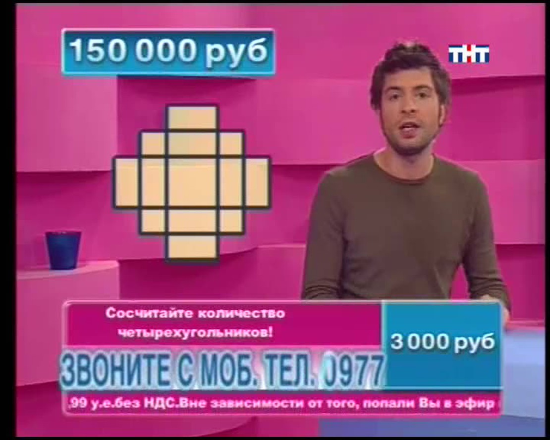 Назовите столицу европейского государства на букву "Х". В названии какой программы ТНТ целых две буквы Ы? ЕЛТЕОРВЗИ тоже имеет отношение к ТНТ. Переставьте буквы и получите слово. Ведущий телевикторины Сергей Блохин задает в прямом эфире вопросы. Если Вы знаете правильные ответы, можете позвонить, сообщить их и заработать денег!