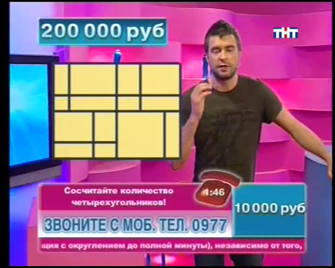 Назовите столицу европейского государства на букву "Х". В названии какой программы ТНТ целых две буквы Ы? ЕЛТЕОРВЗИ тоже имеет отношение к ТНТ. Переставьте буквы и получите слово. Ведущий телевикторины Сергей Блохин задает в прямом эфире вопросы. Если Вы знаете правильные ответы, можете позвонить, сообщить их и заработать денег!