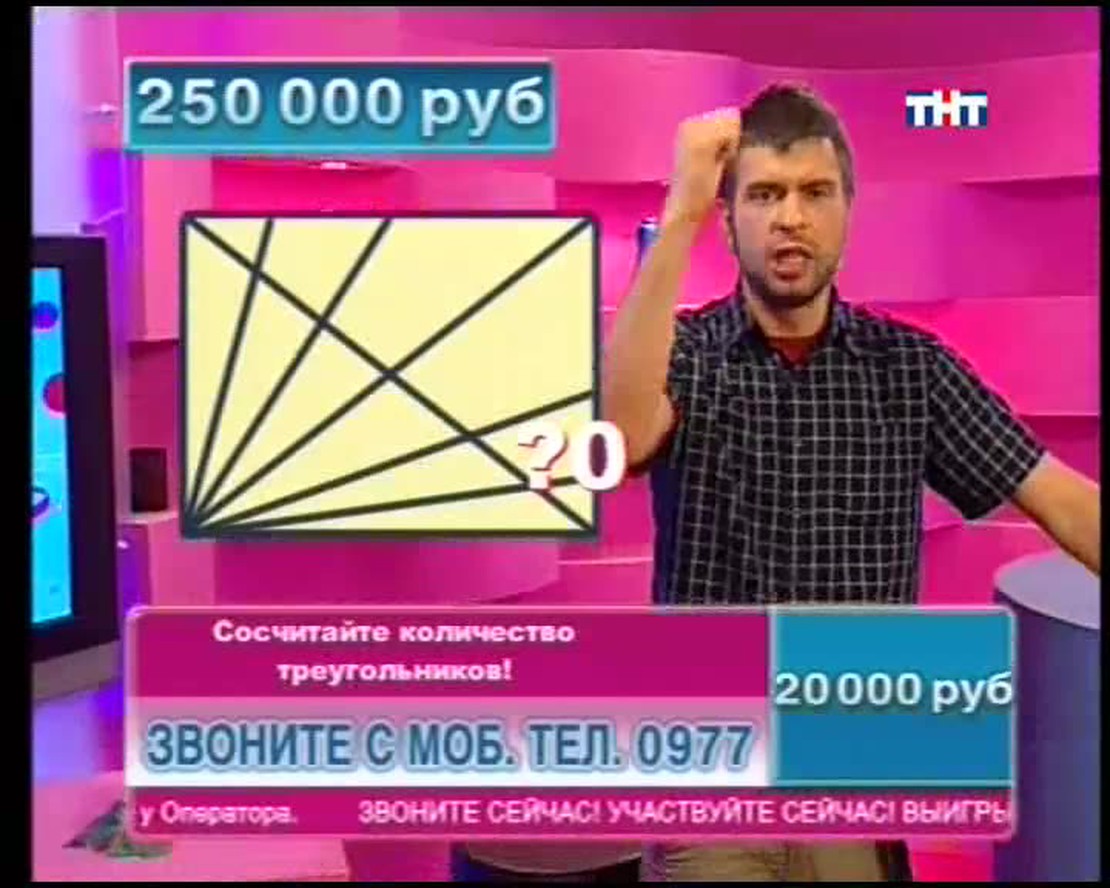 Назовите столицу европейского государства на букву "Х". В названии какой программы ТНТ целых две буквы Ы? ЕЛТЕОРВЗИ тоже имеет отношение к ТНТ. Переставьте буквы и получите слово. Ведущий телевикторины Сергей Блохин задает в прямом эфире вопросы. Если Вы знаете правильные ответы, можете позвонить, сообщить их и заработать денег!