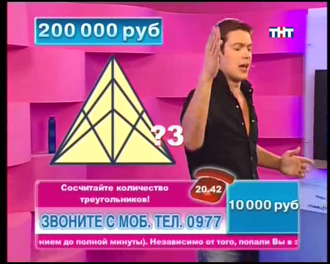 Назовите столицу европейского государства на букву "Х". В названии какой программы ТНТ целых две буквы Ы? ЕЛТЕОРВЗИ тоже имеет отношение к ТНТ. Переставьте буквы и получите слово. Ведущий телевикторины Сергей Блохин задает в прямом эфире вопросы. Если Вы знаете правильные ответы, можете позвонить, сообщить их и заработать денег!