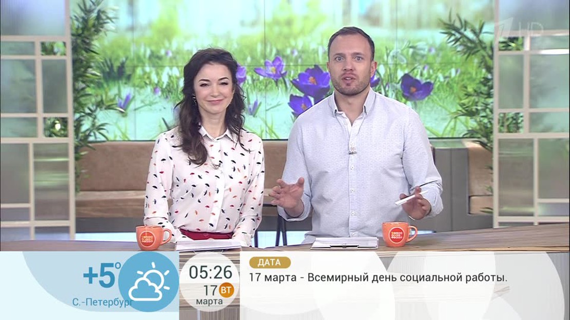 "Доброе утро" — утренний информационно-развлекательный телеканал. В программе — новости политики, бизнеса, искусства, спорта, науки, информация о погоде. Ведущие в студии беседуют с приглашенными гостями. В программе много разнообразной музыки, часто демонстрируются премьерные видеоклипы. Награды: ТЭФИ, Лучшая утренняя программа, 2015; ТЭФИ, Лучшая утренняя программа, 2017; Номинации: ТЭФИ, Лучшая утренняя программа, 2014; ТЭФИ, Лучший ведущий утренней программы — Арина Шарапова, 2014; ТЭФИ, Луч...