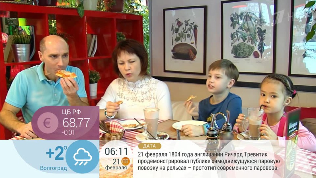 "Доброе утро" — утренний информационно-развлекательный телеканал. В программе — новости политики, бизнеса, искусства, спорта, науки, информация о погоде. Ведущие в студии беседуют с приглашенными гостями. В программе много разнообразной музыки, часто демонстрируются премьерные видеоклипы. Награды: ТЭФИ, Лучшая утренняя программа, 2015; ТЭФИ, Лучшая утренняя программа, 2017; Номинации: ТЭФИ, Лучшая утренняя программа, 2014; ТЭФИ, Лучший ведущий утренней программы — Арина Шарапова, 2014; ТЭФИ, Луч...