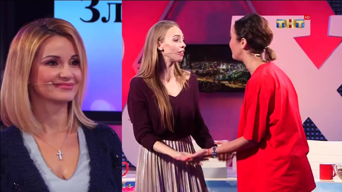 Сегодня шоу "Сплетницы" провели Ольга Бузова, Ольга Орлова и отвечающие за юмор Андрей Родной и Руслан Попов. Бузова заявила, что их шоу похоже на фильм "Матильда", спасти его можно только молитвами активистов. Орлова сообщила, что сегодня в гостях участница шоу "Comedy Woman", а это шоу отмечает свое 10-летие. Ведущая предложила с помощью подсказок угадать имя гостьи. Девушки вынесли разные портреты. Родной рассказал, что гостья красивая, разбирается в дорогих винах, не брюнетка.