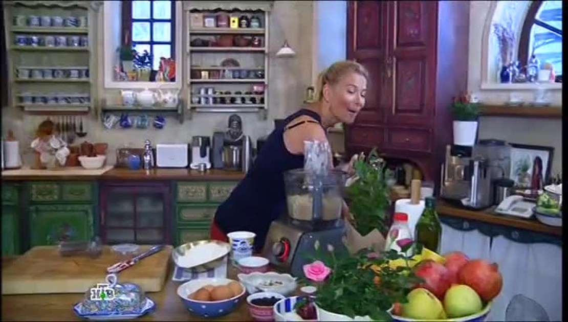 "Едим дома!" — это еженедельная телевизионная кулинарная программа. Сегодня Юлия предлагает испечь праздничный сметанный пирог с фундуком и изюмом. Особенность этого пирога в том, что в крем не нужно добавлять сливочное масло, а значит, не придется переживать за фигуру. Также для торжественного обеда прекрасно подойдет кебаб из цыпленка в гранатовом соусе, а к нему — салат из свежих овощей.