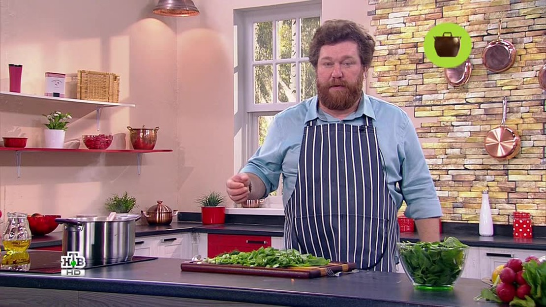 Алексей Зимин предложил приготовить легкий дачный обед, прекрасно подходящий к отдыху на природе. Основными блюдами стали традиционные зеленые щи и индейка с салатом из редиса. На десерт шеф-повар поделился рецептом оригинального пирога с вареньем и кукурузой.