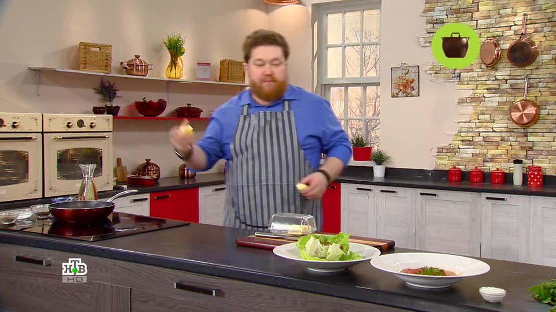 "Готовим с Алексеем Зиминым" — шоу о том, как готовить по-ресторанному вкусно на домашней кухне. На этот раз в обеде Алексея Зимина — много блюд и много мяса! В меню: сборная солянка, салат с колбасой и хурмой, говяжьи стейки в красном вине, кекс с ягодами и белым шоколадом на десерт. Также в выпуске — специальная суповая сервировка и советы из учения фэн-шуй.