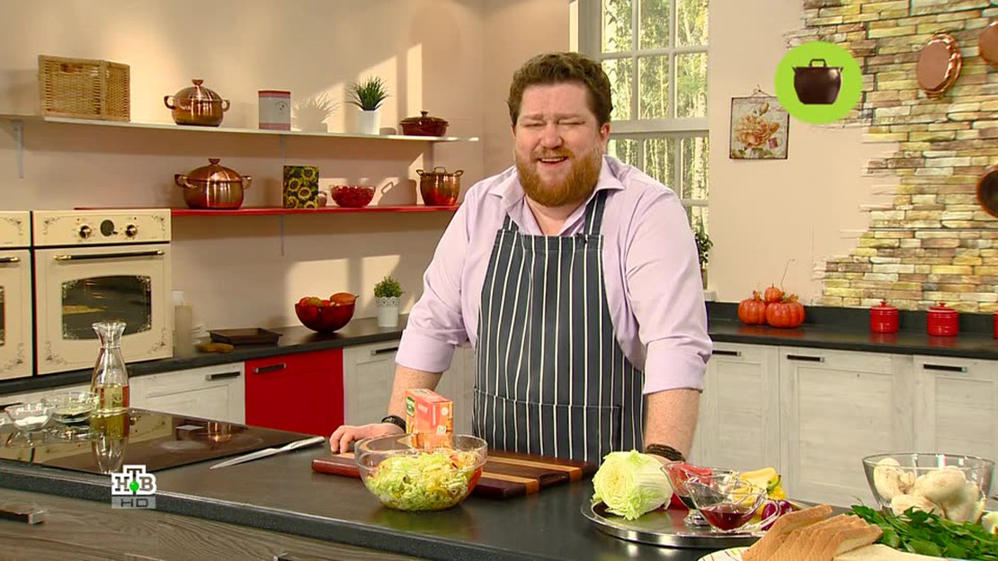 "Готовим с Алексеем Зиминым" — шоу о том, как готовить по-ресторанному вкусно на домашней кухне. Этот обед Алексей Зимин посвятил Всемирному дню хлеба. В меню: салат с наггетсами, говядина под шапкой из сыра и картошки, а также – десерт "Забытый хлеб" с ванилью.
