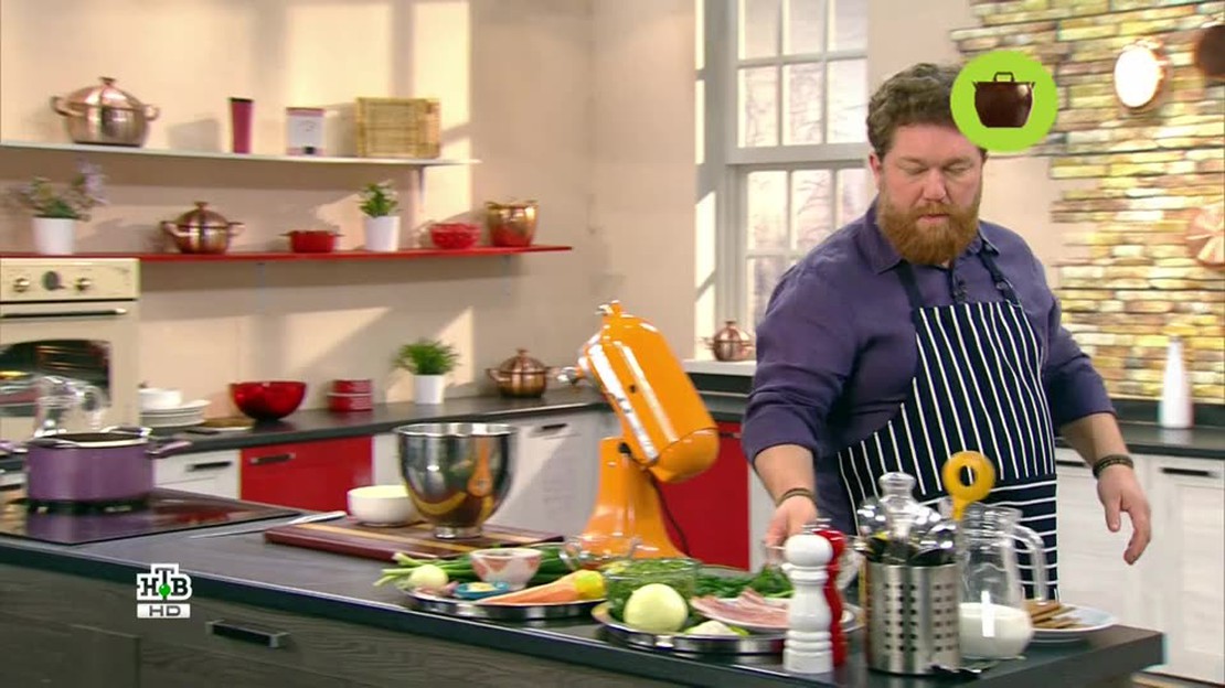 В меню основательного обеда по мотивам немецкой кухни — гороховый суп со свиным окороком, томленая говядина в кисло-сладком соусе и пышные пончики с апельсиновой цедрой. Также в программе — сервировка стола по-немецки и сюжет об истории и кулинарных традициях одного из красивейших городов Германии.