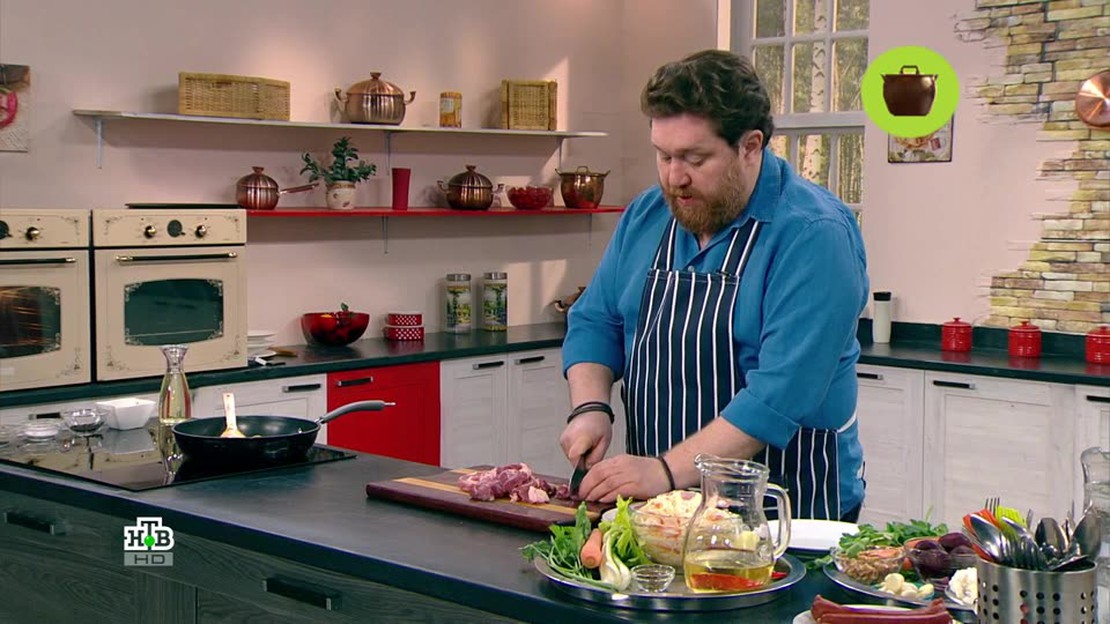 "Готовим с Алексеем Зиминым" — шоу о том, как готовить по-ресторанному вкусно на домашней кухне. Холодный сезон уже скоро закончится, а вот появления свежих натуральных овощей и фруктов еще нужно подождать. Чтобы пополнить запас витаминов, Алексей Зимин предложил три блюда для полноценного обеда. В меню: карпаччо из корнеплодов с грецкими орехами и сыром, мясное рагу с квашеной капустой и медовые коврижки на десерт. Также в программе — сюжет о зимних овощах.