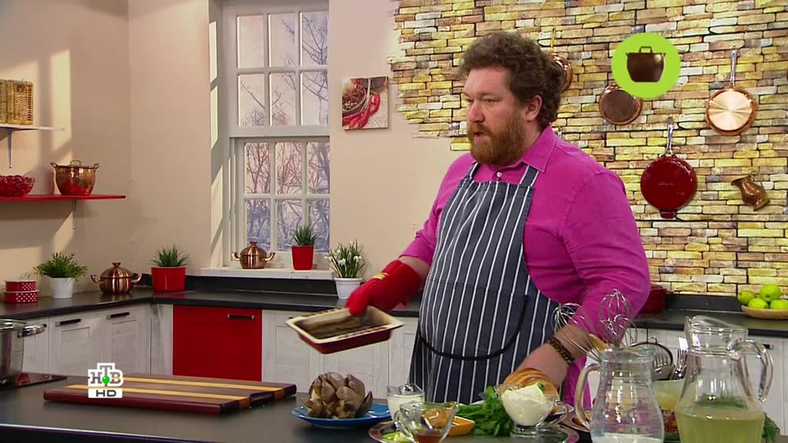 В эту субботу Алексей Зимин предложил сытный изысканный обед, приготовленный в лучших традициях русской кухни. В меню: суп калья из судака на капустном рассоле с четверговой солью, жаркое из индейки с грибами и сливочным соусом, а также гренки с джемом. Также в программе — история и кухня Тулы и секреты старинных русских напитков.