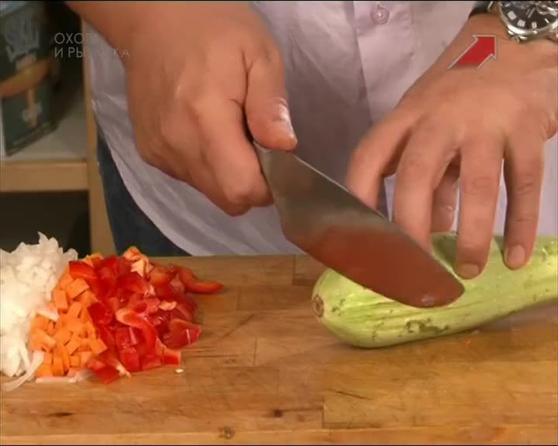 Серж Маркович готовит корейку кабана, для этого он традиционно использует разнообразные приправы, а в качестве гарнира он использует замороженный зеленый горошек, который наш шеф-повар советует накануне разморозить.