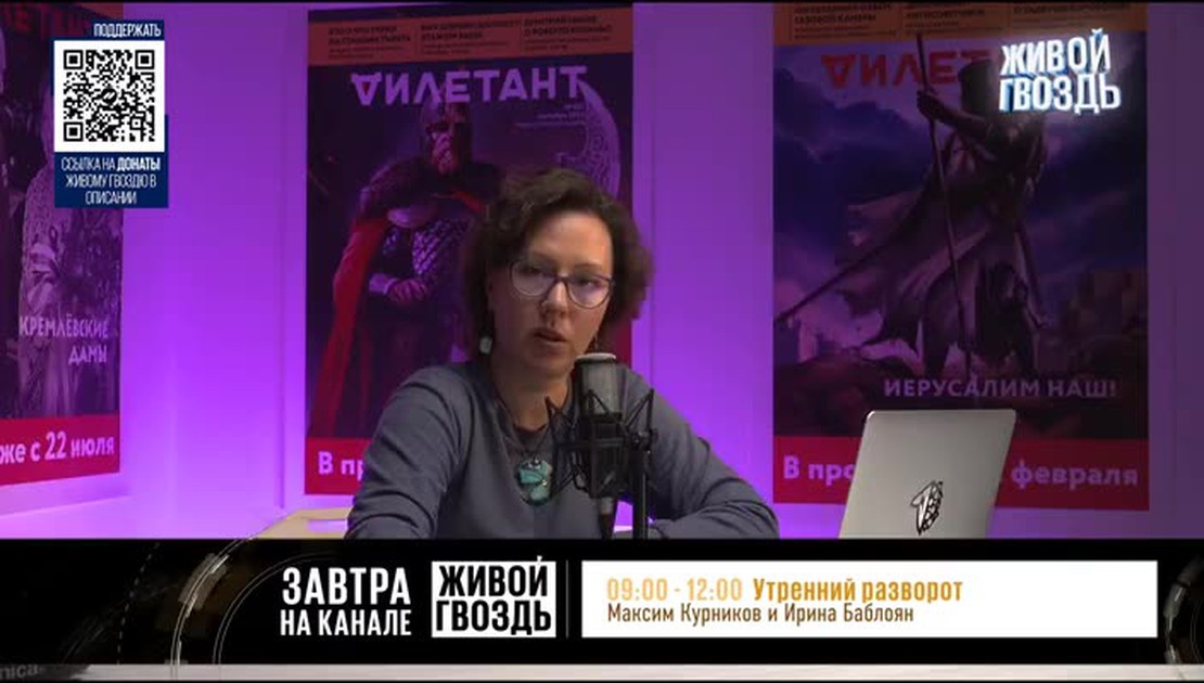 В эфире канала "Живой гвоздь" Ольга Журавлева — популярный журналист и известная российская радиоведущая "Эхо Москвы".