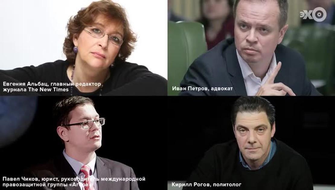 Сегодня по скайпу политолог, вице-президент фонда "Либеральная миссия" Кирилл Рогов. Юрист, руководитель международной правозащитной группы "Агора" Павел Чиков и адвокат и руководитель "Команды 29" Иван Павлов. Конечно, поводом к эфиру послужила прежде всего ситуация вокруг Алексея Навального, которая приобретает все более чудовищные краски. Навальный находится в тюрьме уже 77 дней, по делу, по которому условный срок закончился 31 декабря. И претензий по которому у потерпевшей стороны, у компани...