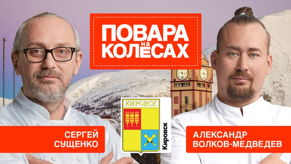 Звездные шефы Сергей Сущенко и Александр Волков-Медведев продолжают гастрономическое турне по России. В новом выпуске оценить звездные блюда от шефов предстоит жителям Кировска — десерт "Кольский ледник" с грушей и каштановым медом и "Хибинский сугроб" с олениной и твердым сыром.