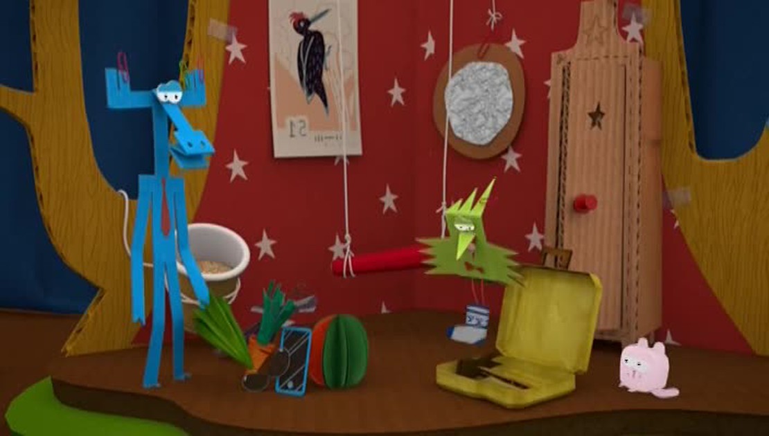 Герои передачи — дружные зверюшки. В своей квартире, полной чудес и неожиданных сказочных вещей, они встречают своих взрослых друзей, узнают много нового об окружающем их мире и, конечно же, делятся своими открытиями с детьми. В этом выпуске наши маленькие зрители узнают как правильно есть и увидят серию мультфильма "Бумажки. На всякий бумажный случай".