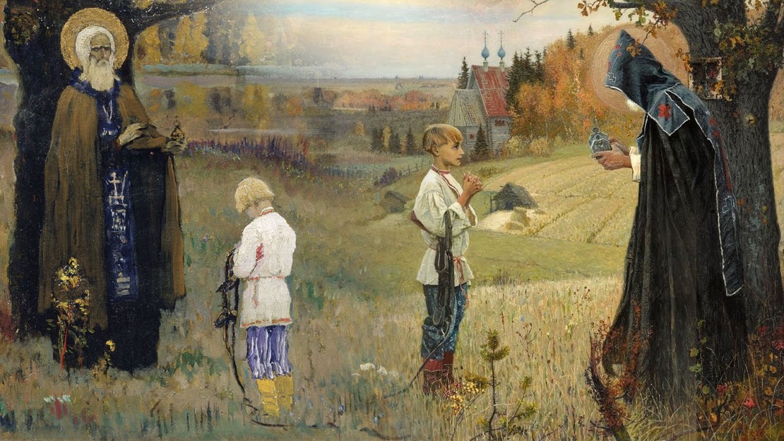 "Видение отроку Варфоломею" — картина русского художника Михаила Васильевича Нестерова, первая и самая значительная работа из цикла, посвященного Сергию Радонежскому. Работе над "Видением отроку Варфоломею" предшествовала картина "Пустынник", задуманная еще летом 1883 года в Сергиевом Посаде и завершенная в 1889 году в Уфе. В ней уже зазвучала тема "одиночества, "пустынножития", то есть жизни человека вдали от мирской суеты, в гармонии с природой во имя нравственного очищения души и обретения ду...
