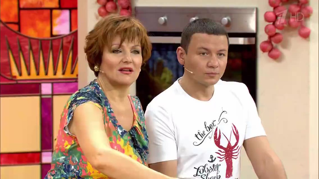 В программе "Время обедать!" — кулинарный матч Россия-Франция. Русскую кухню представляет актриса Елена Чарквиани, а французскую — шеф-повар Руслан Галуза.