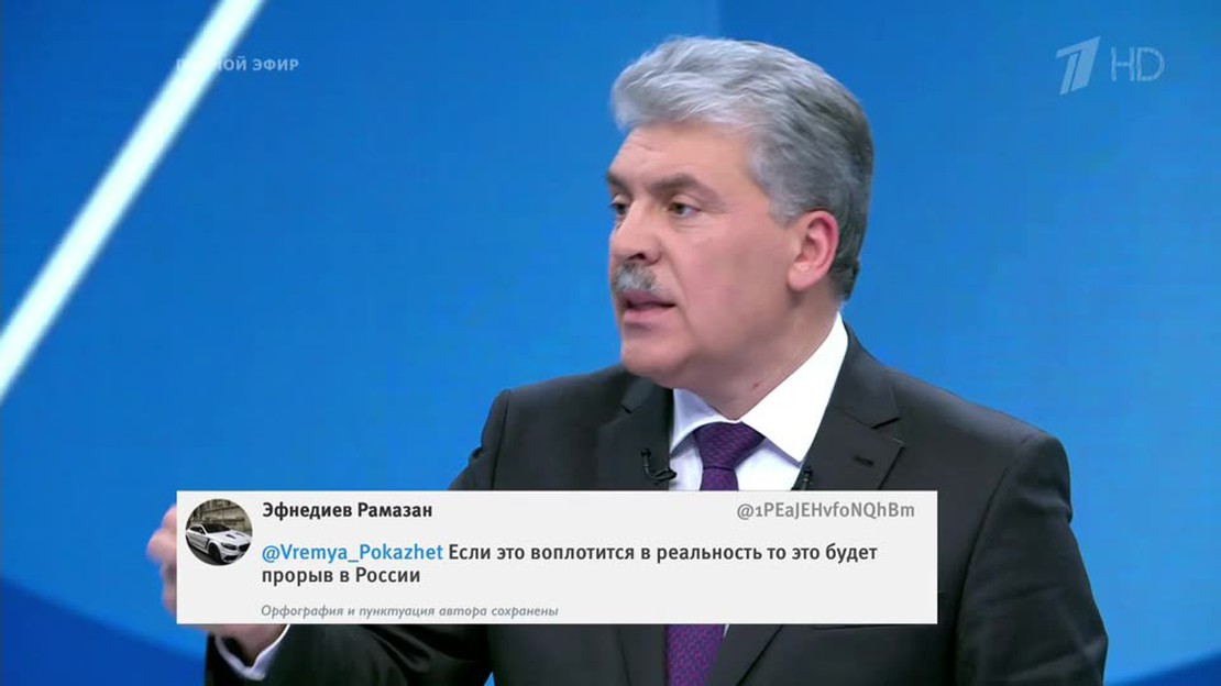 В студии программы бизнесмен Павел Грудинин рассказывает о целях и задачах, которые он намерен решить на посту президента. Предпринимателя выдвинул съезд КПРФ. Павел Грудинин является директором "Совхоза имени Ленина", который снабжает столицу клубникой, земляникой и яблоками. У Павла Грудинина есть политический опыт. Он избирался в Московскую областную думу и горсовет райцентра Видное. Также является заслуженным работником сельского хозяйства. Главный акцент предвыборной программы Павла Грудини...
