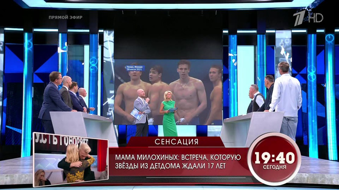 В студии программы "Время покажет" эксперты, политики и политологи обсуждают самые актуальные темы общественной и политической жизни в стране и в мире. В этом выпуске в центре внимания экспертов: Скандалы на Олимпийских играх. Талибы заявили, что контролируют около 90% границ Афганистана. Фашизм в Украине. Владимир Зеленский ответил на статью Путина "об историческом единстве русских и украинцев".